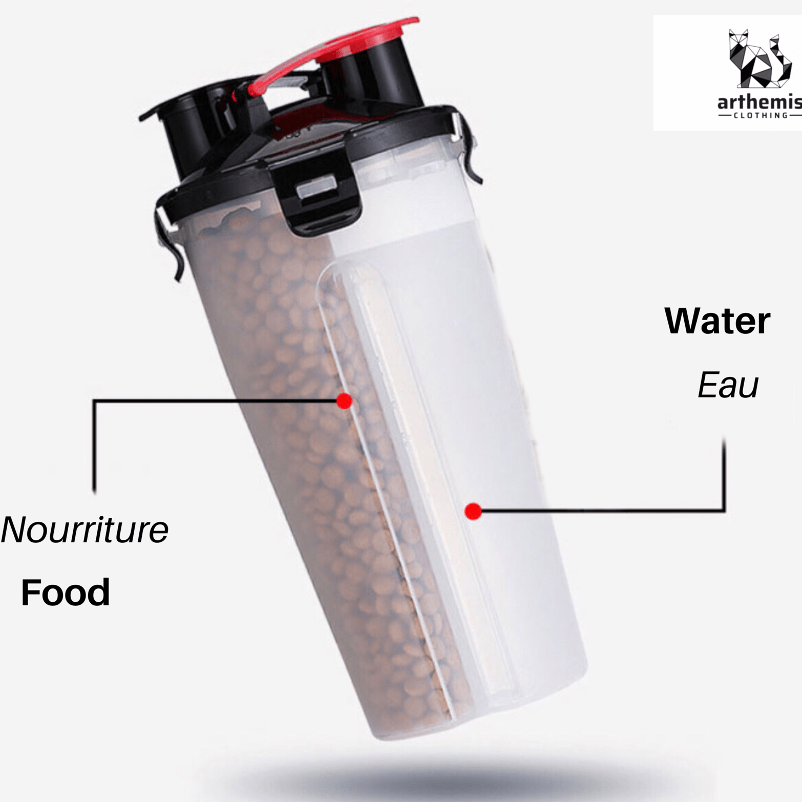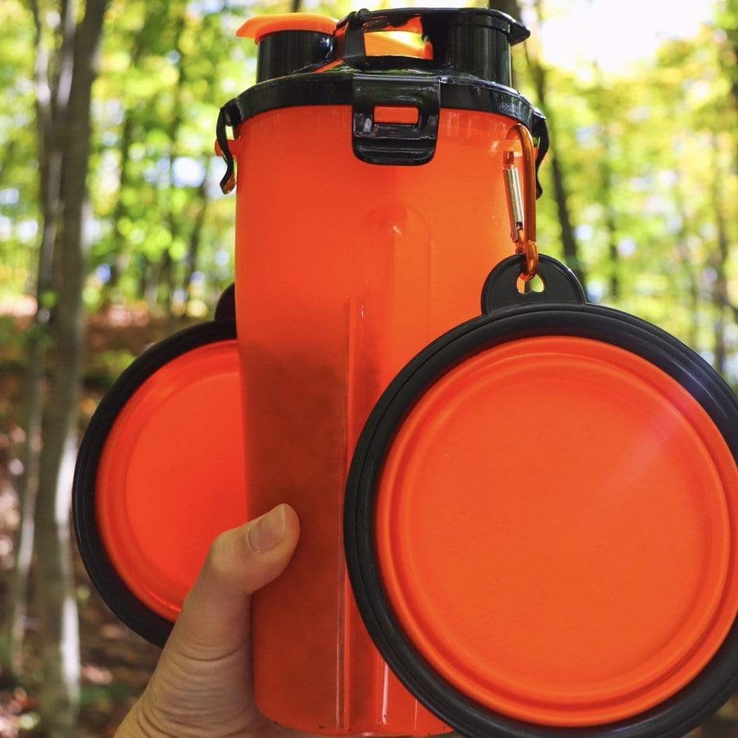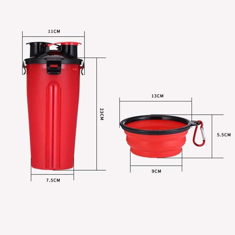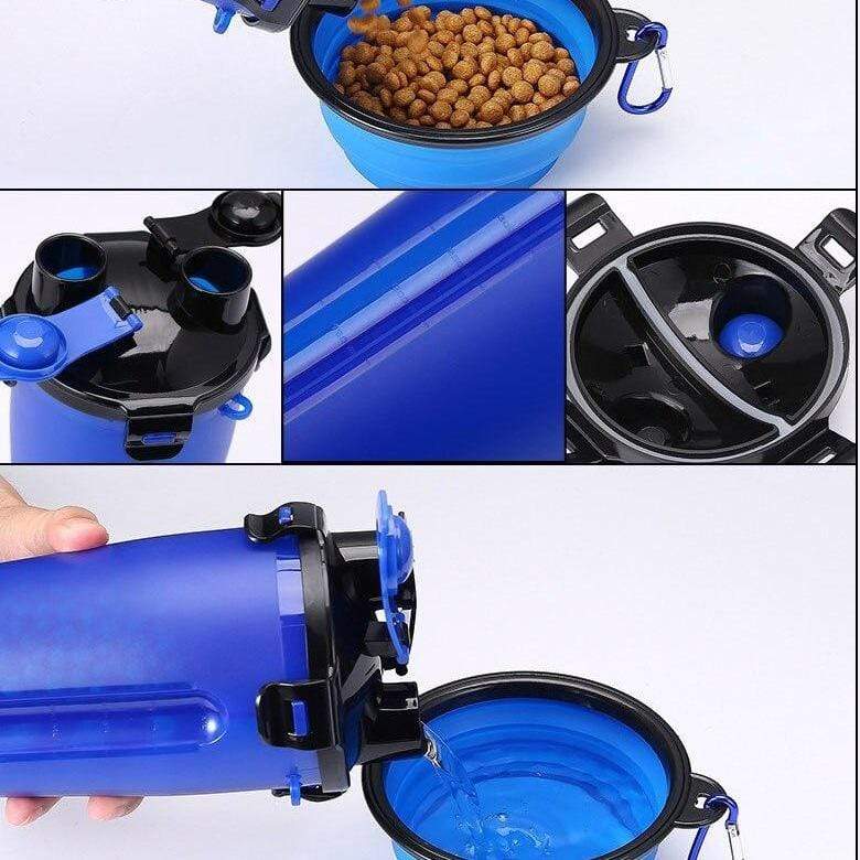 Get a portable food bowl and a very practical bottle! This bottle allows you to bring food AND water with you: unfold your portable bowl and offer your pet a feast whenever you want.